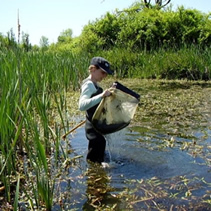 Generally the highest abundance and diversity of invertebrates is found in the parts of a wetland that have emergent vegetation. Different zones within a wetland will probably support different communities of invertebrates, so you may want to sample several different areas to get a representative community of invertebrates. However, if you are sampling multiple wetlands, make sure that you have a standardized method (i.e., always sampling invertebrates in the emergent vegetation zone where the water is 0.5 meters deep). This will allow you to compare the invertebrate community found at Wetland A to the invertebrate community found at Wetland B.