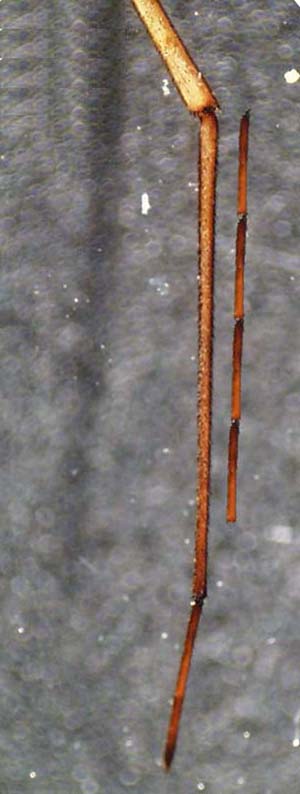 have very long back and middle legs. The femur reaches past the end of the abdomen when the leg is extended.