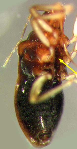 antennae. The tips of their wings lack veination. Their front legs have apical claws, and the femur of each leg has at least a few stout dark spines. |
