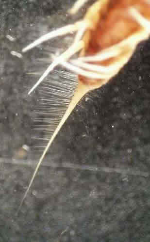 Identifying feature(s): pointed tail, plate over each thoracic segment, segmented abdominal gills