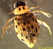Many aquatic beetles are benthic, lliving on or in the substrate. Others, such as adult whirligig (Gyrinidae) or predaceious diving beetles ( Dytiscidae) swim within the water column or on the water surface. The most commonly encountered Coleoptera in Pacific Northwest wetlands are Dytiscidae, Haliplidae (crawling water beetles) and Hydrophilidae (water scavenger beetles). Some families, such as riffle beetles (Elmidae) and long-toed water beetles (Dryopidae) do not regularly inhabit wetlands because they prefer faster moving waters. As with the rest of this guide, the focus of the beetle section is on the taxa most likely to be found in wetlands, but taxa less likely to be found are also included, in separate links.