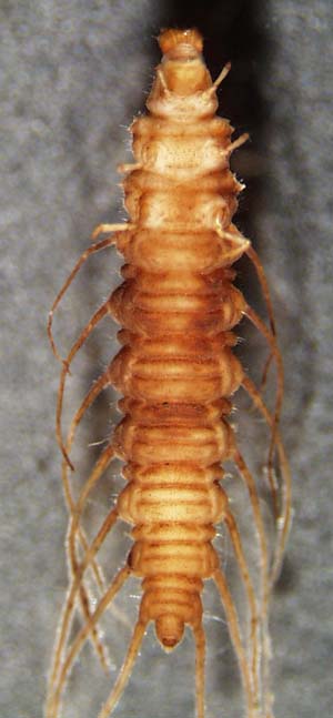 Diverse group with slender legs, eight abdominal segments and prominent sickle-shaped mandibles. The last abdominal segment tapers to a point and may have two small tails. Some have filaments on the sides of the abdomen but lack hooks at the tip.