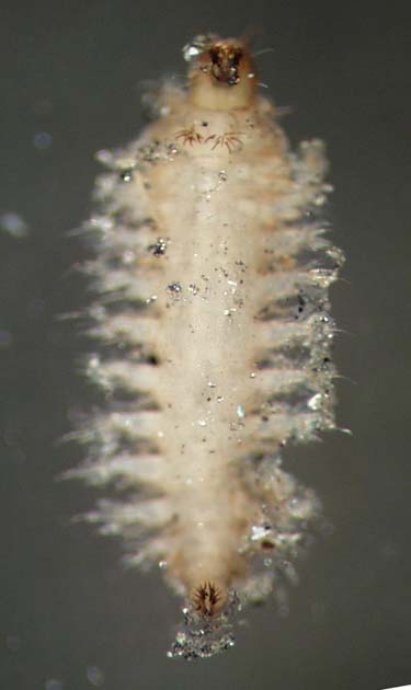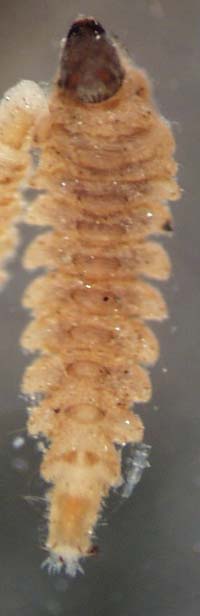 Ceratopogonid larvae prefer standing or slow-moving waters and are commonly collected in wetlands; some are semi-aqautic and inhabit moist sand or mud. Larvae can be diverse, but the most commonly encountered types have a long, cylindrical, threadlike body with a distinct narrow head capsule; most lack prolegs. In the Northwest, the biting midges are represented by three subfamilies.