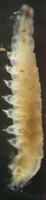 Fly larvae are very diverse in appearance. However, at least among the aquatic insects, they are fairly unique in that they have no jointed legs. Thus, fly larvae are more likely to be confused with worm-like organisms than with otherb types of aquatic insects.