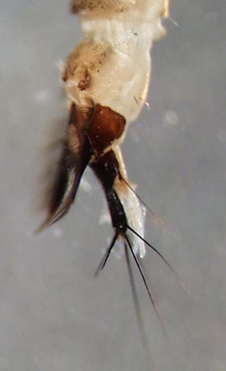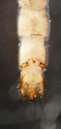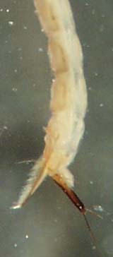Identifying feature(s): prominent, hardened head; long, thin body that terminates in long breathing tube