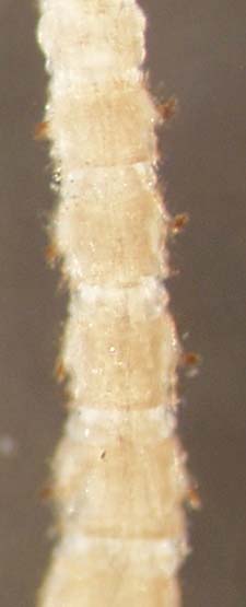 larvae have a prominent hard capsule that is distinct from the thorax. Their bodies are very long (15-60 mm) and thin and covered with rows of
