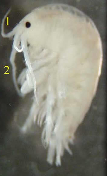 can be found in a variety of habitats. There is disagreement as to whether there is a single species or multiple species in the Northwest. The second antennae (lower) are similar in shape but longer than the first (upper), easily distinguishing Hyalella from any other amphipods. Corophium also has longer second antennae, but they are highly modified