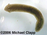 Flatworms (class Turbellaria) live in many water bodies, from cold mountain streams to mucky urban drainage ditches and wetlands. They include the planarians, which are familiar to many from regeneration experiments in school biology class. Live Turbellaria are quite delicate and will tear easily if you try to pick them up with tweezers. When preserved in alcohol, they tend to break down; their spongy remains are sometimes difficult to recognize as an animal, and their white pharynx (feeding tube) may evert or completely separate from the body.
