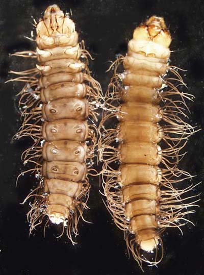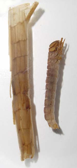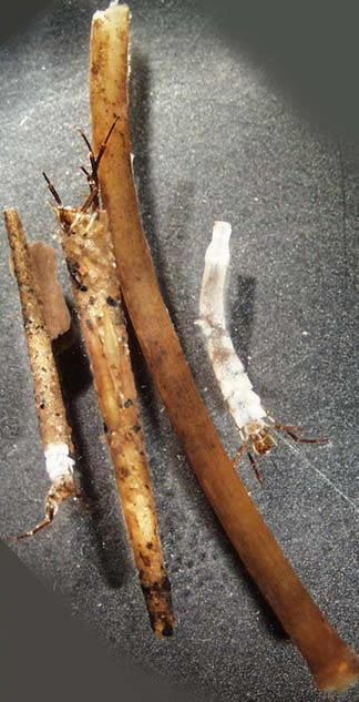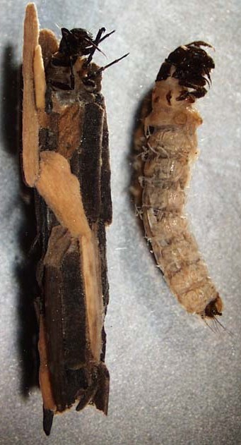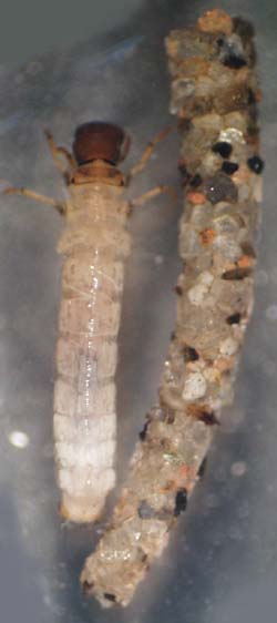 (caddisflies) - often inhabit cases made of rock or plant material; soft-bodied