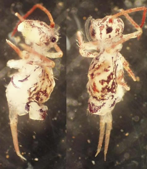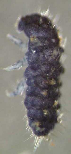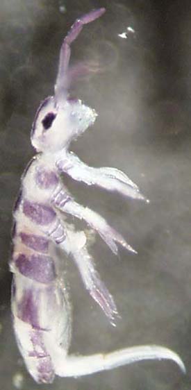 (springtails) - sometimes colorful (purple, yellow, red); often with