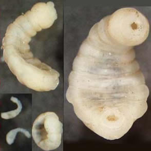 Iincredibly diverse group; heads may be hard and well-developed or reduced to a few dark rods; may have fleshy legs (1 to many) or suckers; only group on this page that has any sclerotized regions |