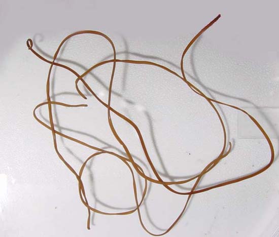 Very long, tough, unsegmented, wiry worm-like animals; sometimes found tangled in writhing masses |