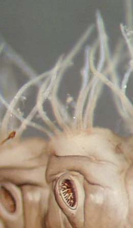Many finger-like gills on abdomen and thorax; 6 short, hard legs on thorax; 4 pairs of tiny prolegs on the ventral side of the abdomen