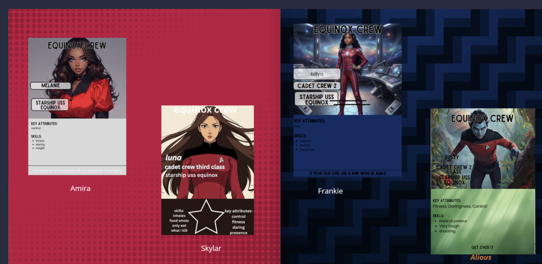 In comparison, here are some pages from this year’s 2025 Starship Equinox Crew Manifest Book Creator book: